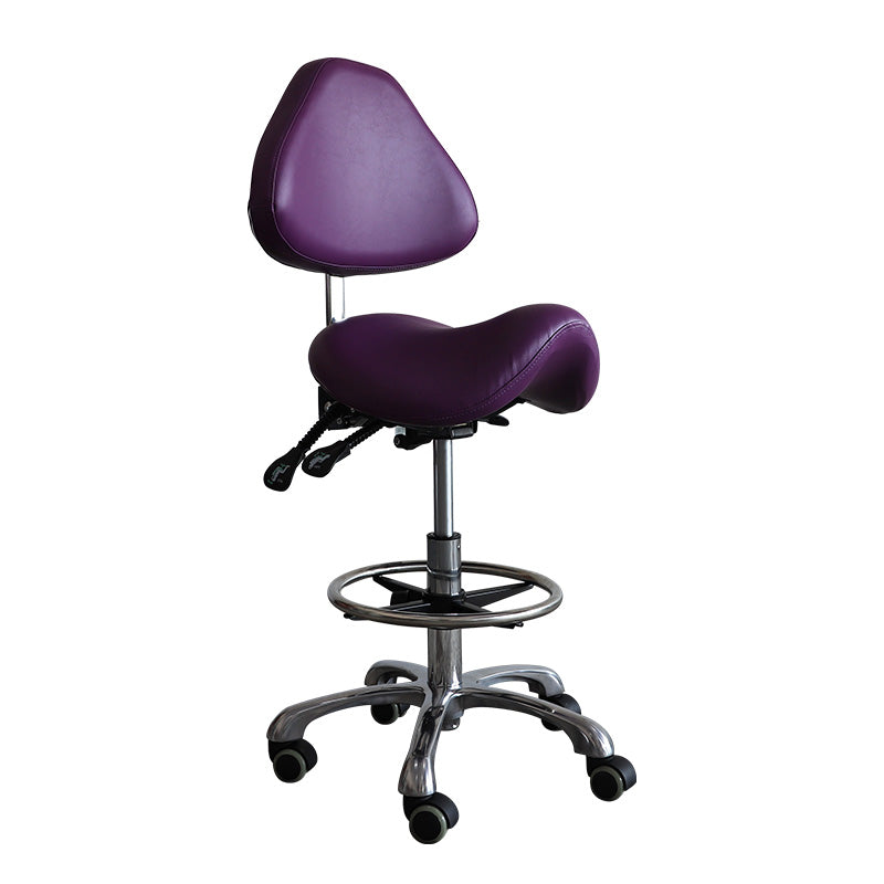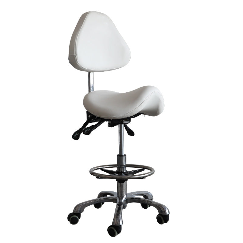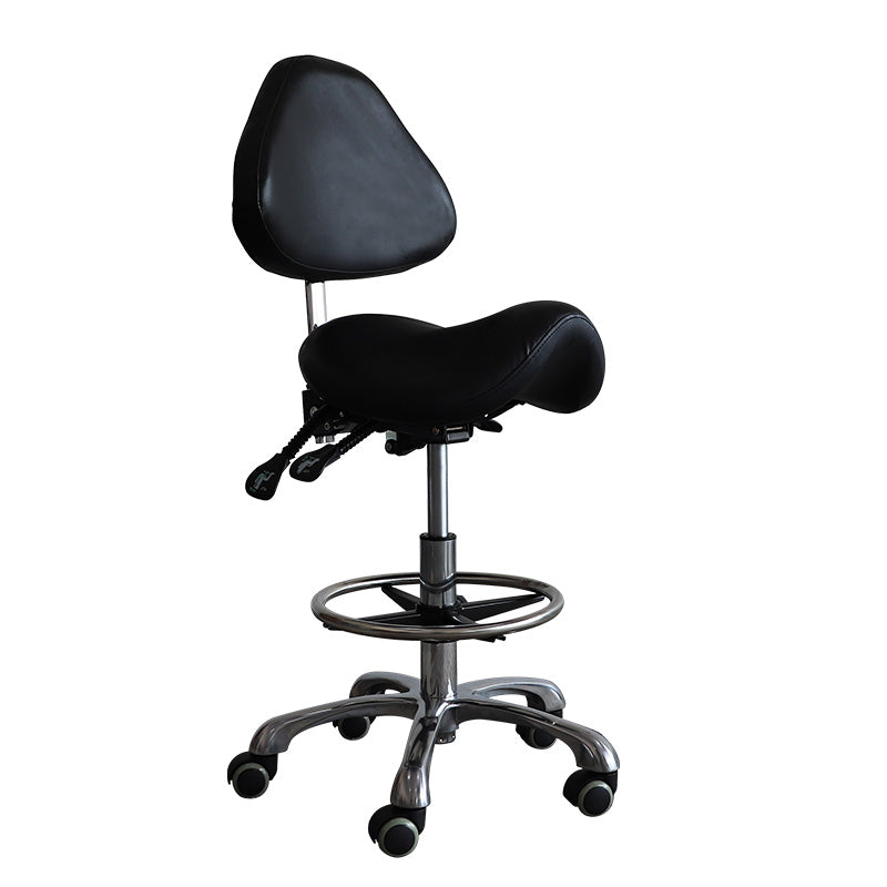 - This saddle style stool chair is perfect for spas, schools, tattoo shops, clinics and more. It's got a sleek design that looks good in any setting!