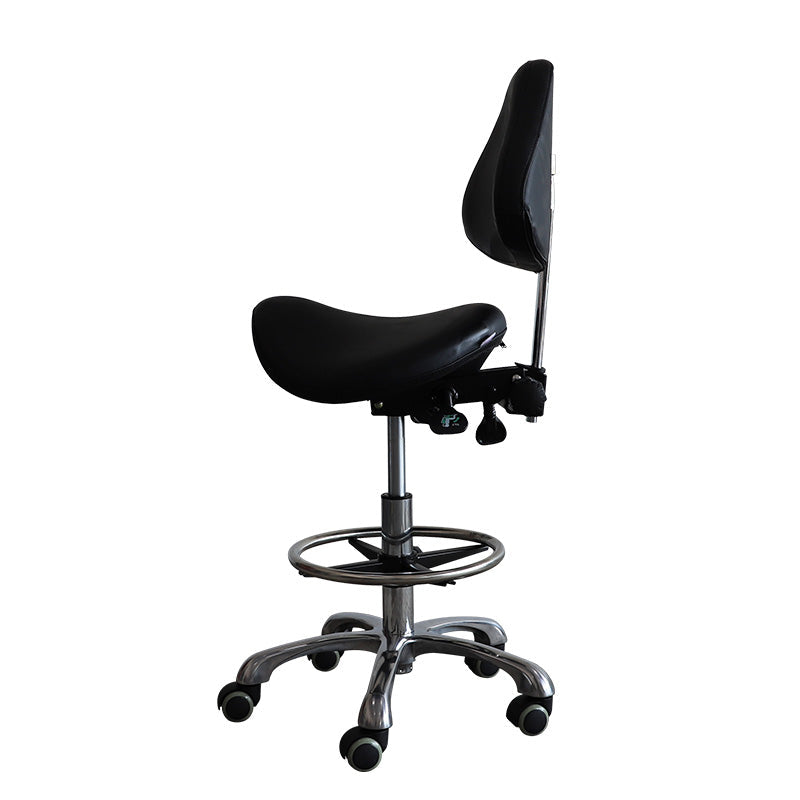 When it comes to improving your posture, you need a chair that is designed to support your back. Our saddle style stool chair will help you maintain a healthy stance as you work or relax. The adjustable footrest and backrest allow this chair to be customized for the perfect fit. With a 360-degree swivel wheel, smooth moving on the floor, and PU leather upholstery, this modern swivel saddle style is a must-have!