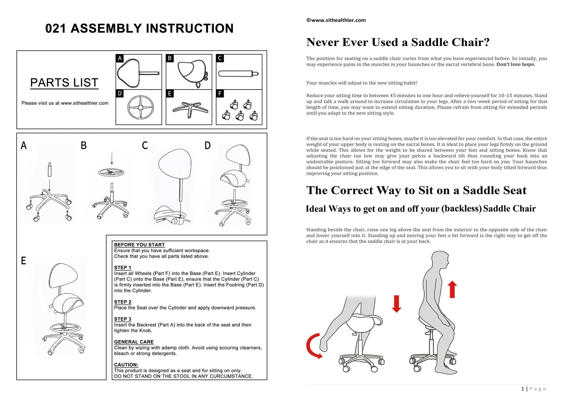 Ergonomic Comfortable Saddle Style Chair With Footrest & Backrest