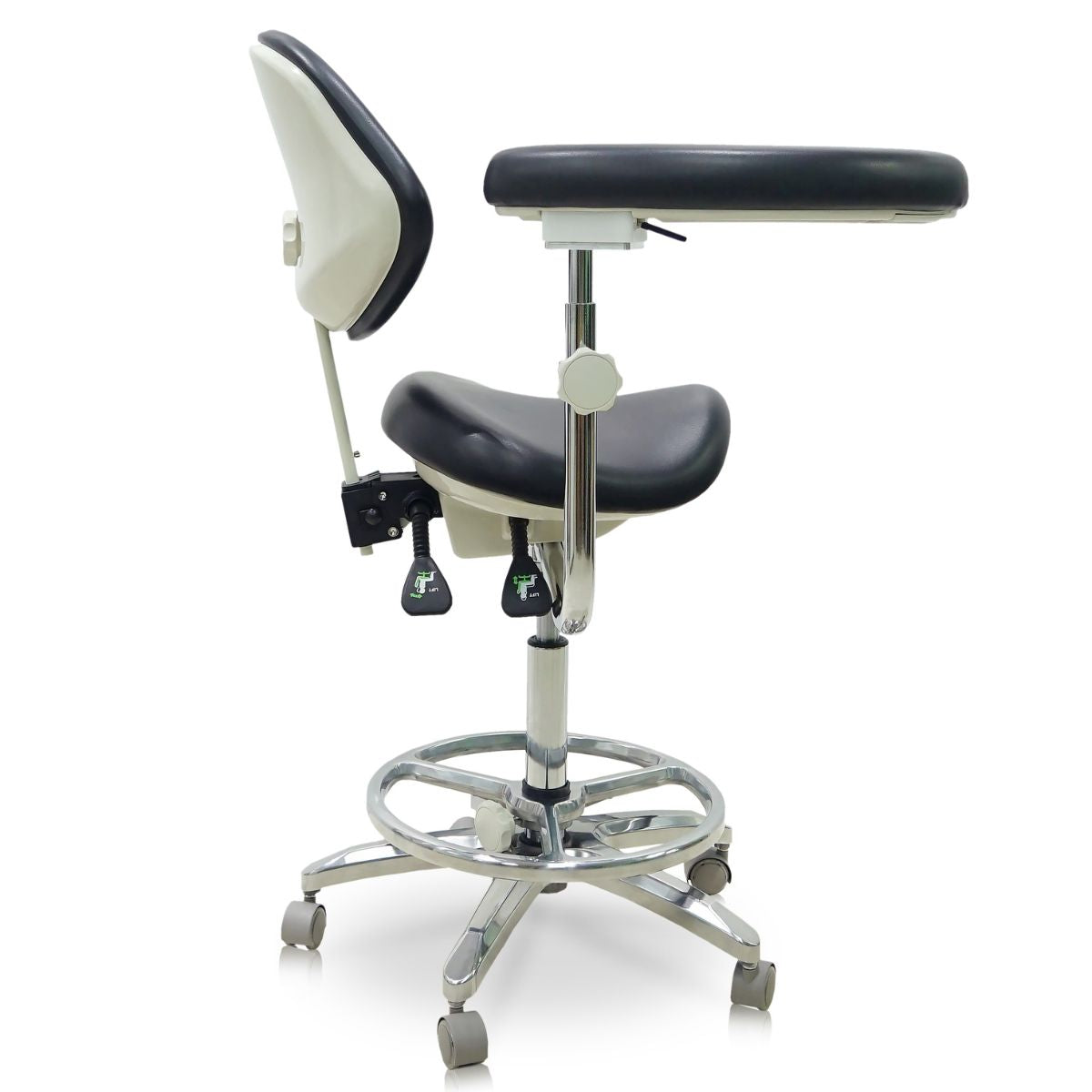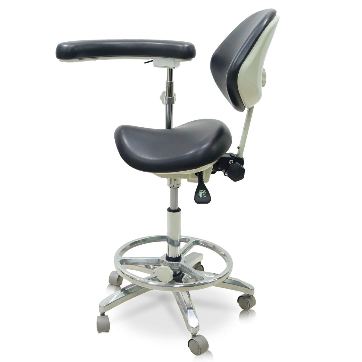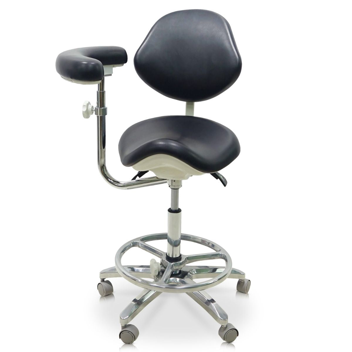Imagine an ergonomic saddle chair that is easily maneuvered and doesn't push back on your legs. With the Saddle Style Dental Assistant Stool with Swing Arm and Footrest, you can swivel to different areas of the room without getting up. The ergonomic backrest provides optimal comfort for you and your patients or customers. This chair is durable and perfect for Dentists, Dental Assistants, Aestheticians, Doctors, Tattoo Artists, Salon Workers and many more!