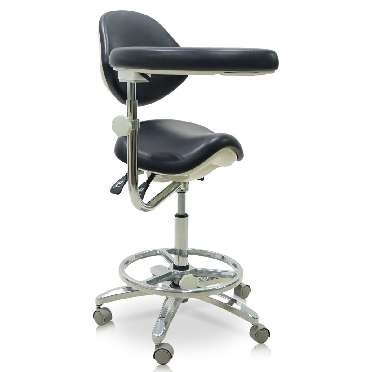 Saddle Style Dental Assistant Stool with Swing Arm and Footrest