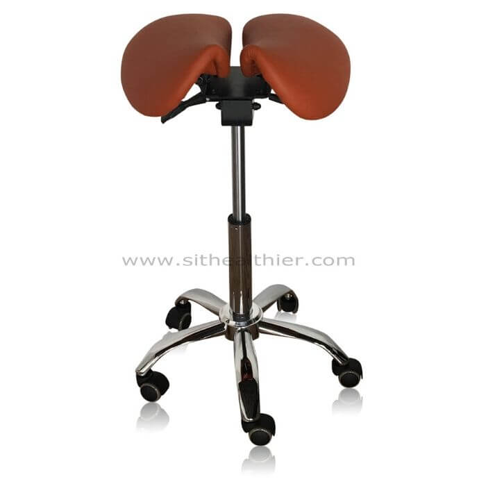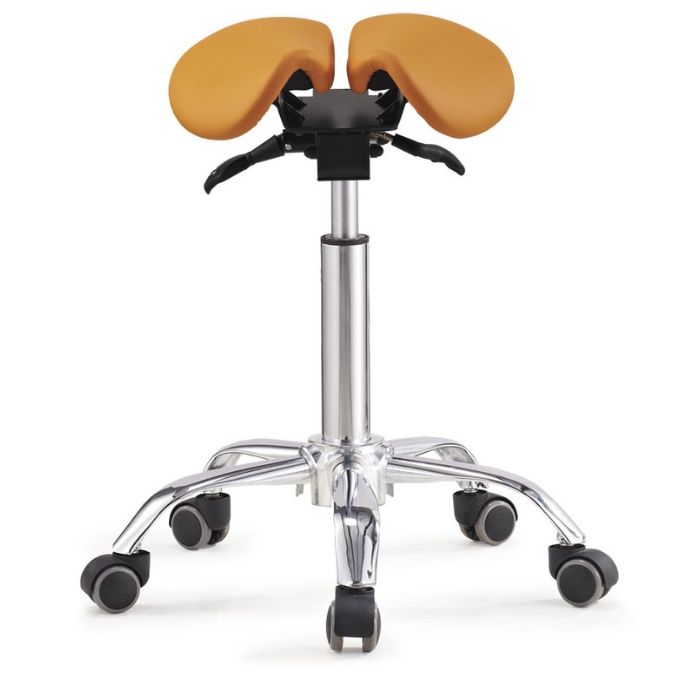 The forward angled of the Saddle Style Split Seat helps keep the pelvis tilted forward and your back in an upright position. This Ergonomic Saddle Chair has a riding-like position that is designed to promote better posture and to encourage active sitting - it helps in exercising the muscles around the abdomen and back.