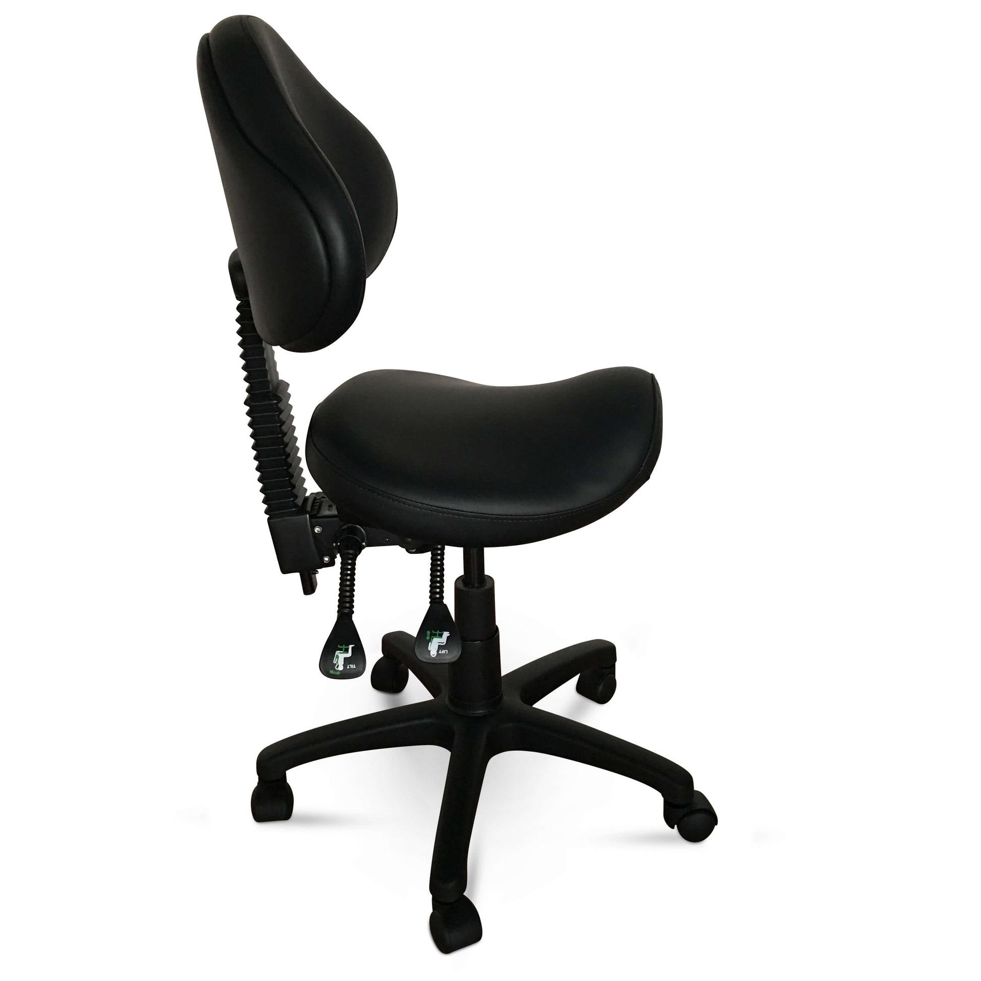 This is a very comfortable and easy to use saddle stool with an adjustable backrest. The PU soft leather padding allows the user to sit comfortably while seating and the saddle design reduces pressure on the legs and encourages proper body posture.