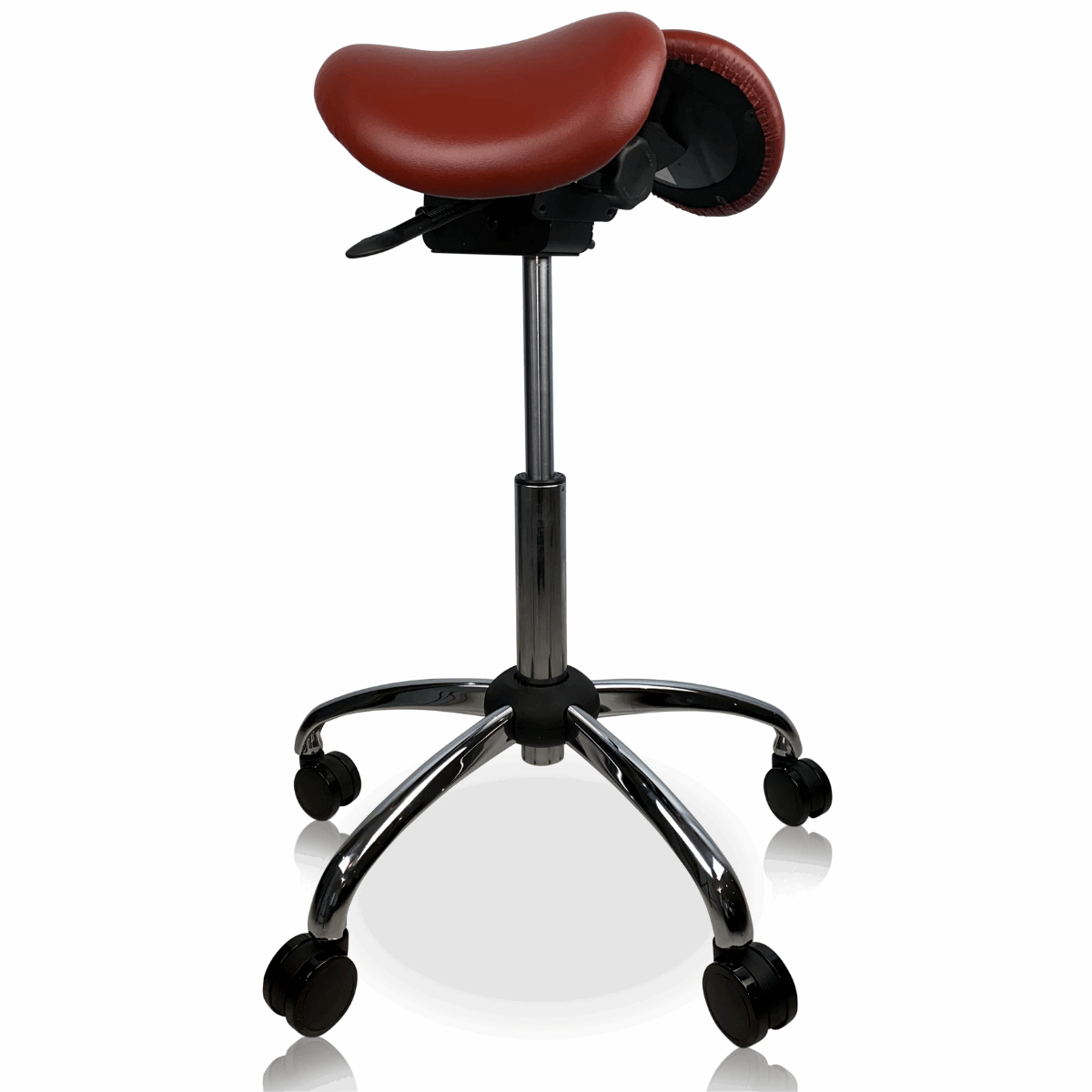 This elegant piece of saddle stool boasts adjustable width and sitting angle which can be set to your preferred settings making it ideal for offices, elevated counters, high desks, and other settings requiring users to be in close contact with their workstation.